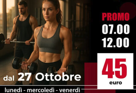 Read More☀️ BUONGIORNO FITNESS! ☀️Tutta la giornata a lavoro? La sera sei troppo stanco/a?⏰Ti svegli presto? Allora questa promo è fatta per te! 💥 PROMO 7.00 – 12.00🏋️♂️ Sala pesi + Corso funzionale📅 Dal 27 Ottobre, ogni Lunedì – Mercoledì – Venerdì Inizia la giornata con energia e motivazione! 💪Approfitta dell’offerta e allenati nelle prime ore […]